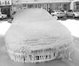 日前,长春市一轻轨高架桥下面,一辆轿车被冰覆盖,前轮更深深陷于冰中,像一座“冰雕”,路人纷纷求合影!据了解,这辆车9日就停于此处,由于车辆一夜未动,几天时间,它已经“变身”成展品啦!