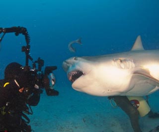 墨西哥摄影师无保护状态近距拍摄鲨鱼捕食。