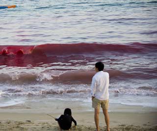 近日广东深圳大梅沙出现大面积赤潮。据了解,该海域海水呈较深的粉红色,绵延几百米长,几十米宽。据市海洋环境与资源监测中心监测属夜光藻赤潮,赤潮带海水呈红色,有粘稠感。“此次赤潮为无毒赤潮,建议海水浴场和市民暂停人体直接接触海水的娱乐项目。”该中心负责人表示,赤潮的发生与气象、水文等多个因素相关,不能直接与海水污染画上等号。(中新网)