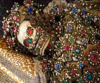 近日,考古专家在意大利罗马一古代墓穴挖掘出多位“土豪”,每具尸体都只剩下骸骨,但几乎全身披满金银珠宝,而且被证实全是真货。目前,这些集体埋葬的“土豪”身份还不清楚。(中新网)