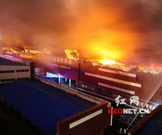 11月29日16:31时许,长沙三湘南湖家具城第四层发生火灾,15个中队45台消防车200余名消防官兵赶往现场进行救援。由于该建筑外侧被铁制广告牌包围,加之建筑内部结构复杂,且存放大量可燃易燃的木质家具、电器设备等,造成火灾载荷大,给消防灭火救援带来极大困难。火灾原因和财产损失正在进一步调查之中。(红网)