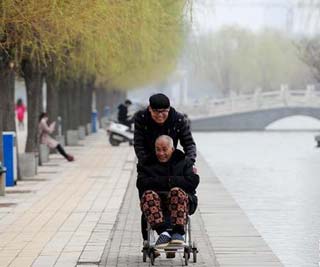 图:“孝心男孩”带着瘫痪父亲上大学