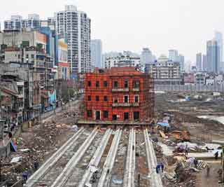 图:武汉百年建筑将平移滑行90余米。