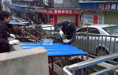 近日,岳阳楼街道郭亮社区自筹2万多元资金,对桃花井路临街门店的破损门头进加固翻新。此举不仅实惠辖区经营户,更营建了整洁美丽的社区环境,得到居民群众一致认可。(岳阳楼街道余刚 摄)