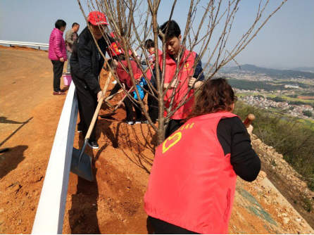3月12日上午,岳阳楼街道组织10名党员志愿者来到麻布山下,参加以“构建绿色屏障,建设绿色家园”为主题的2018年春季义务植树活动。在春光明媚的植树现场,志愿者们自发组队,各有分工,有的挥锹挖土,有的扶苗填坑,有的端水浇灌,有的夯实土层,大家相互协作,严格按照“三填两踩一覆土”的要求,一丝不苟地完成植树程序,每个人脸上都洋溢着劳动的兴奋和喜悦。大家纷纷表示,植树不仅绿化环境,也体现了全社会保护生态、和谐共存的美好理念,希望更多的人参与到爱绿护绿的队伍中来,以实际行动共建青山绿水美好家园。 (岳阳楼街道 张杭)