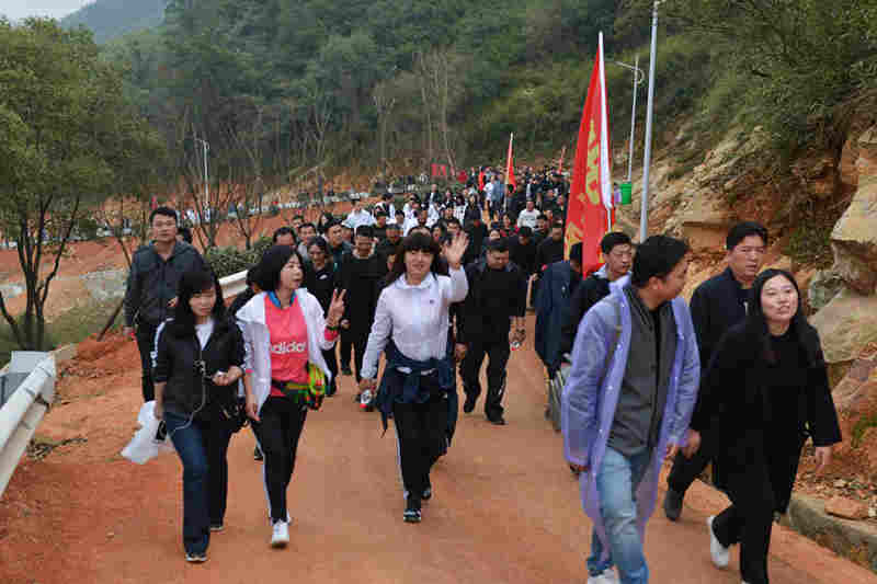 图为“走进新时代 建设引领区”干部职工春季登山活动现场。(谢湘波 摄)
