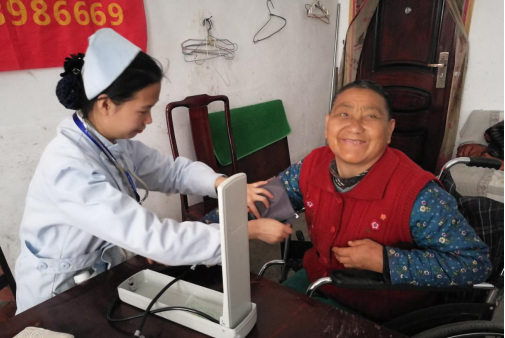 图为医疗志愿者为敬老院老人测量血压(徐娟 摄)