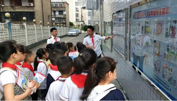 图为工作人员为学生们讲解安全知识要点(谢渊波摄)