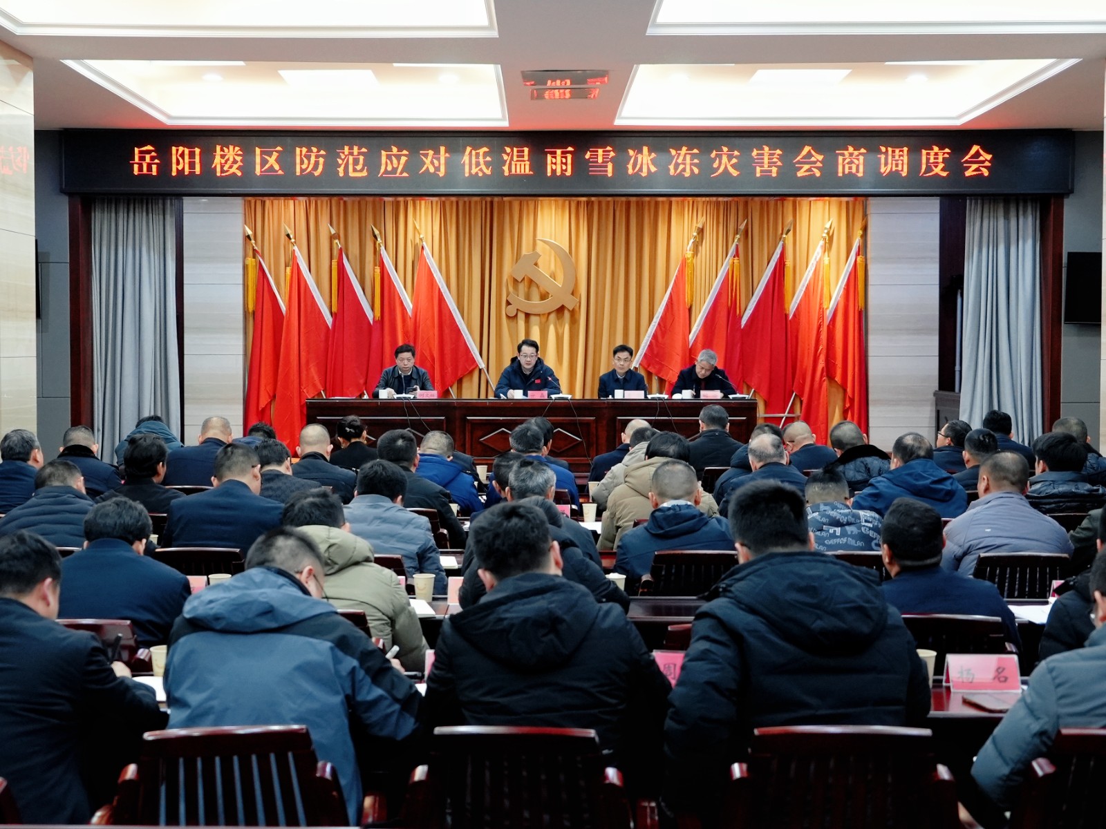 为有效应对即将到来的低温雨雪冰冻天气,1月19日下午,我区召开防范应对低温雨雪冰冻灾害会商调度会。区委常委、常务副区长亓磊,副区长李熊出席。