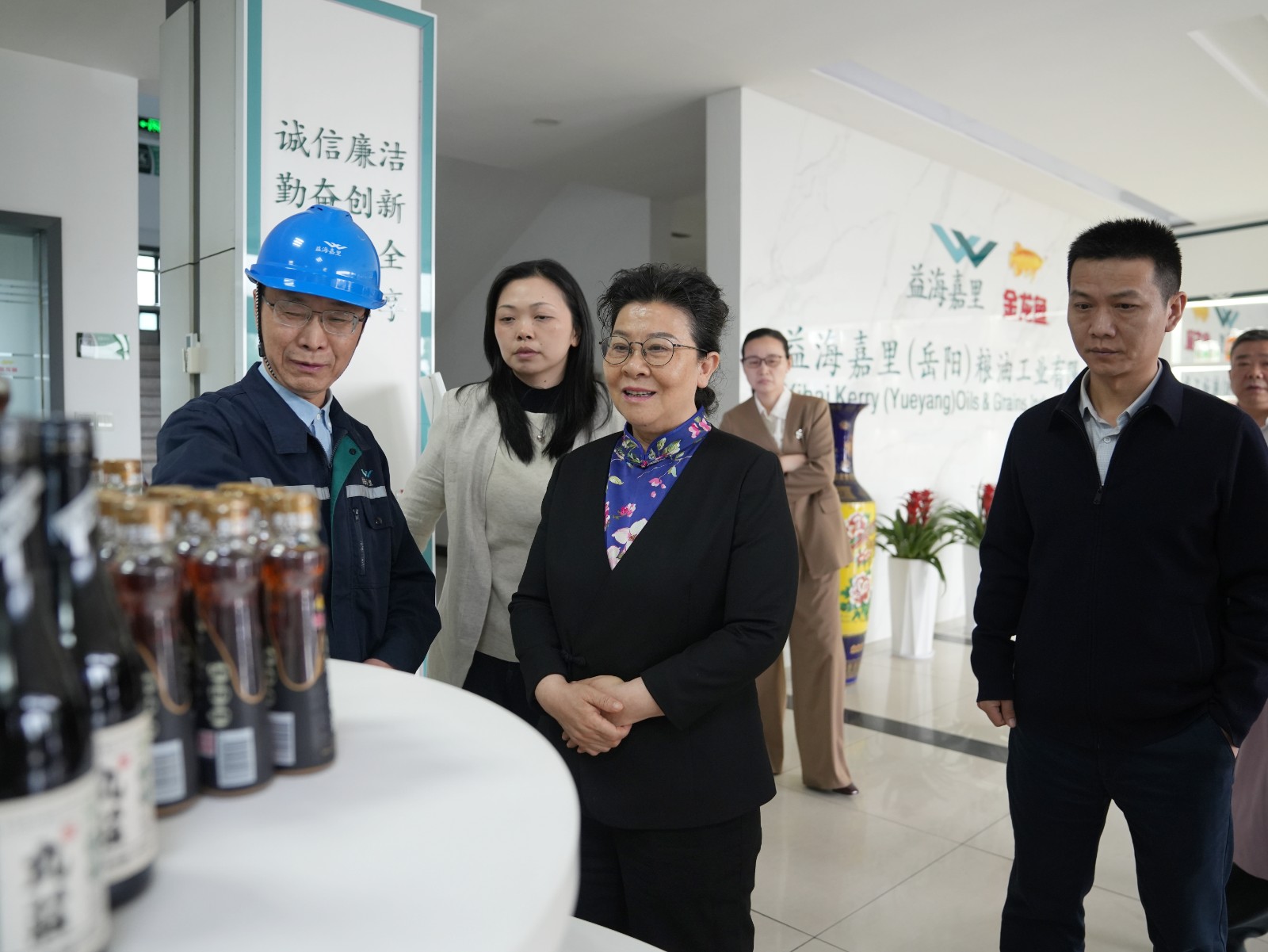 刘晓英一行先后前往岳阳市洞庭密封材料有限公司、湖南凯美特气体股份有限公司、益海嘉里(岳阳)粮油工业有限公司,深入企业生产一线,详细了解企业发展中遇到的痛点、堵点和难点问题。