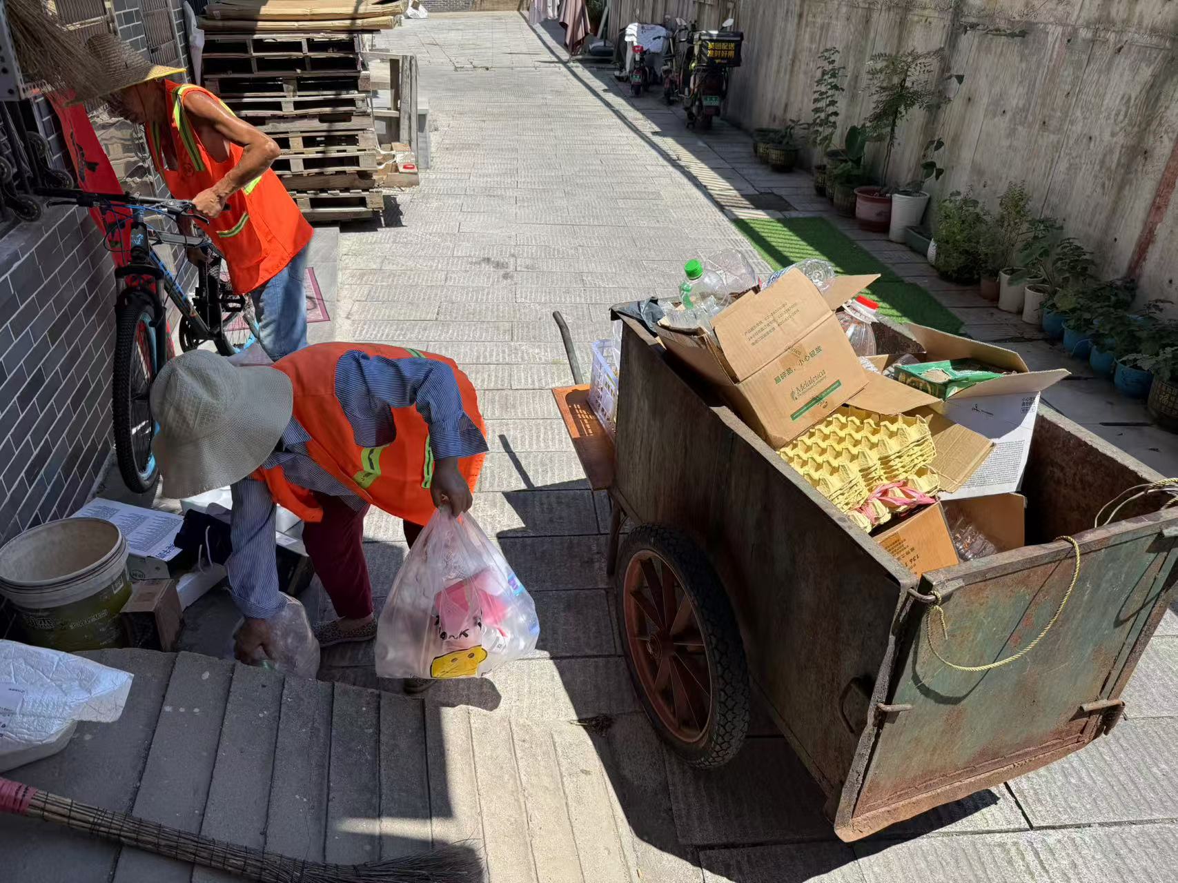 整治过程中,社区工作人员和环卫工人分工明确、协作有序。清晨,他们便拿着扫帚、垃圾袋、夹子等工具,早早来到社区,在背街小巷,大家仔细排查每一个角落,那些堆积已久的枯枝败叶、散落的食品包装袋,都被一一清扫、装袋。居民楼道里,废弃的旧家具、积攒的纸箱和塑料瓶等杂物,也在大家的合力下被搬运到指定的垃圾收集点。对于下水道口,工作人员更是仔细地用工具将堵塞的垃圾、淤泥等清除,确保排水通畅。与此同时,社区工作人员还逐户走访,向居民们耐心宣传保持环境卫生的重要性,讲解垃圾随意堆放可能带来的蚊虫滋生、消防安全隐患等问题,倡导大家养成良好的卫生习惯,从自身做起,共同维护社区的整洁。不少居民在了解后,也主动加入到清理自家门前杂物的行列中。