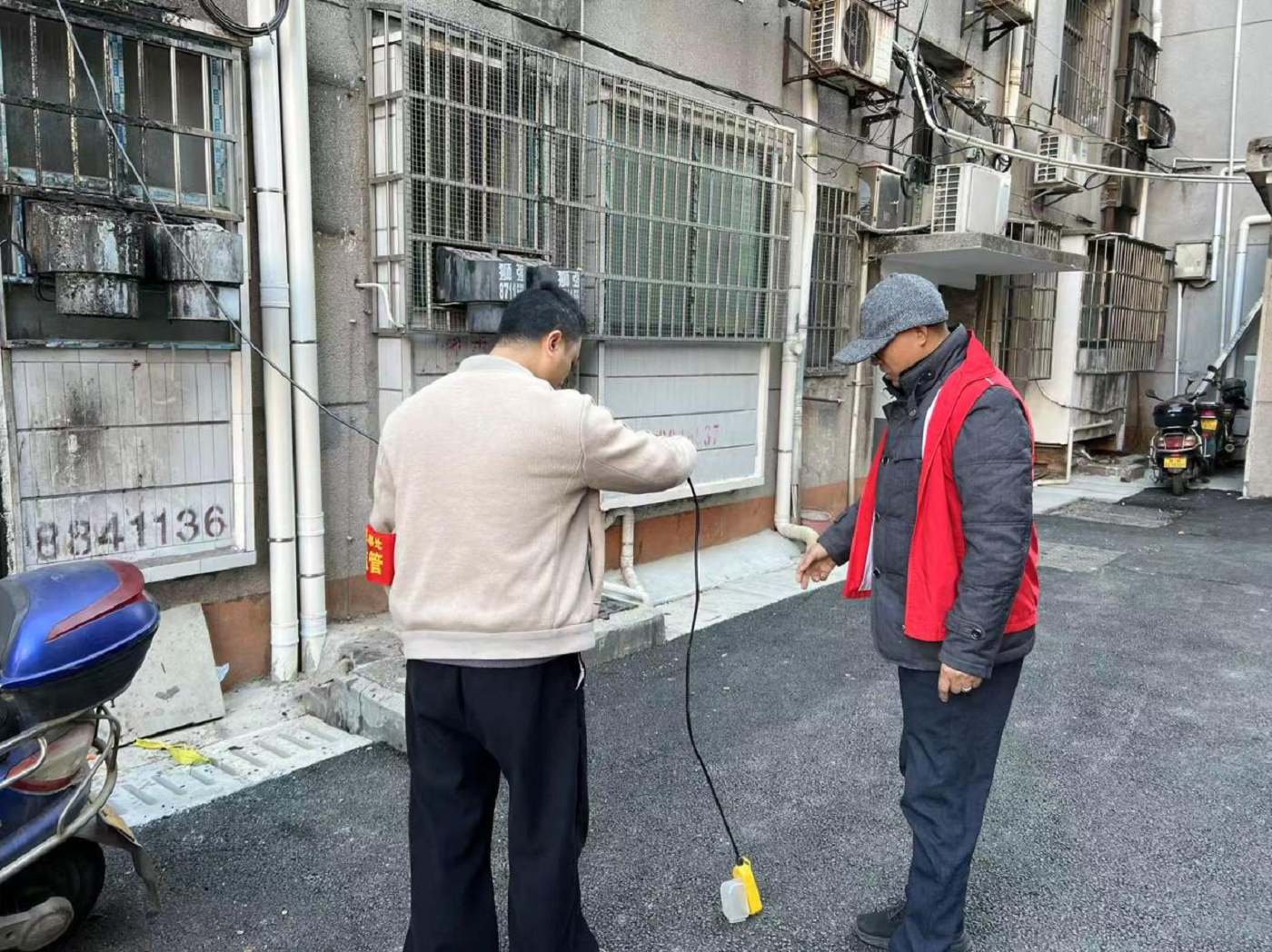 近日,金鹗山街道南津港社区联合街道平安法治和应急管理办公室工作人员,针对粮库小区的飞线充电问题开展专项整治行动。
