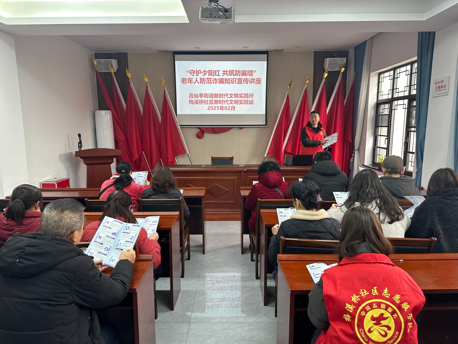 2月24日上午,梅溪桥社区新时代文明实践站在梅溪桥社区二楼会议室组织开展了2025年“守护夕阳红 共筑防骗墙”老年人防范诈骗知识宣传讲座。