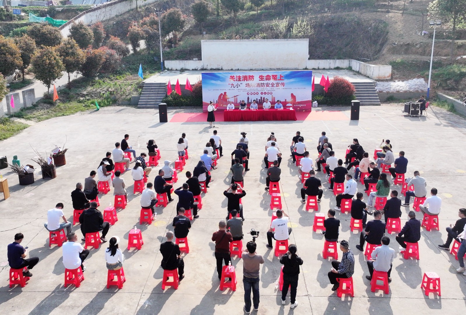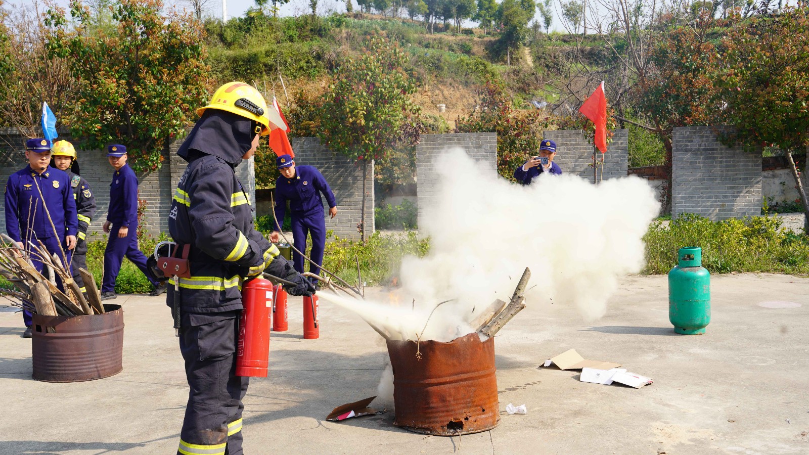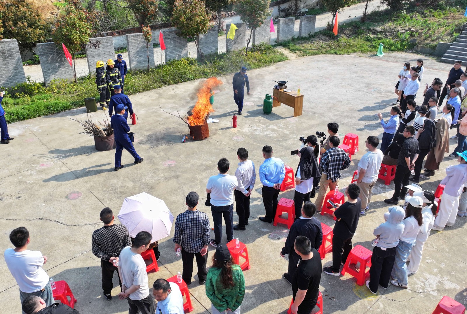 在梅子柿社区篮球场,一场生动的室外消防演练拉开序幕。消防员现场演示了灭火器、消火栓等消防器材的使用方法,并邀请到场居民实际操作,让大家通过亲身体验切实掌握灭火技巧。