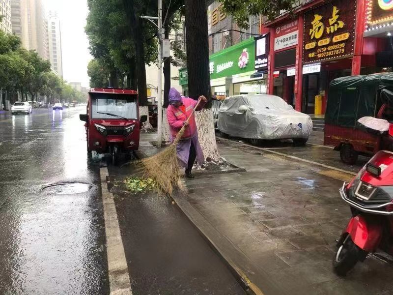 暴雨期间,岳阳楼区市容环境卫生中心坚持“雨天不减标准”,采用“机械+人工”协同作业模式,对巴陵中路、洞庭北路、南湖大道等污染严重路段进行深度清洁。环卫工人先人工清理落叶、淤泥等杂物,再配合高压冲洗车进行精细化冲洗,既节约水资源,又提高了作业效率。据统计,近日累计出动环卫工人1500余人次,清运落叶杂物200余车次,确保路面迅速恢复整洁畅通。此外,该环卫中心加强动态巡查,对突发污染问题做到“即发现即处理”,保障城区环境秩序井然。