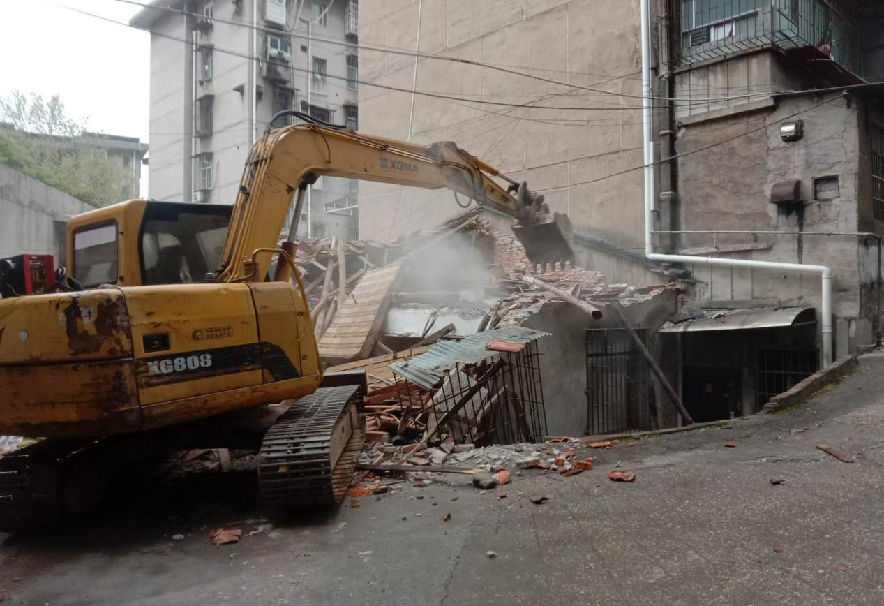为深入推进老旧小区改造,消除安全隐患,近日,区禁违事务中心联合东茅岭街道综合执法大队、城管二大队、派出所等多部门,依法对年丰巷社区工程公司家属区内三处违法扩建房屋实施强制拆除,腾出面积约120平方米。此次行动严格遵循《中华人民共和国城乡规划法》《中华人民共和国消防法》等法律法规,以“依法依规、文明执法”为原则,为居民生活环境和消防通道畅通提供保障。