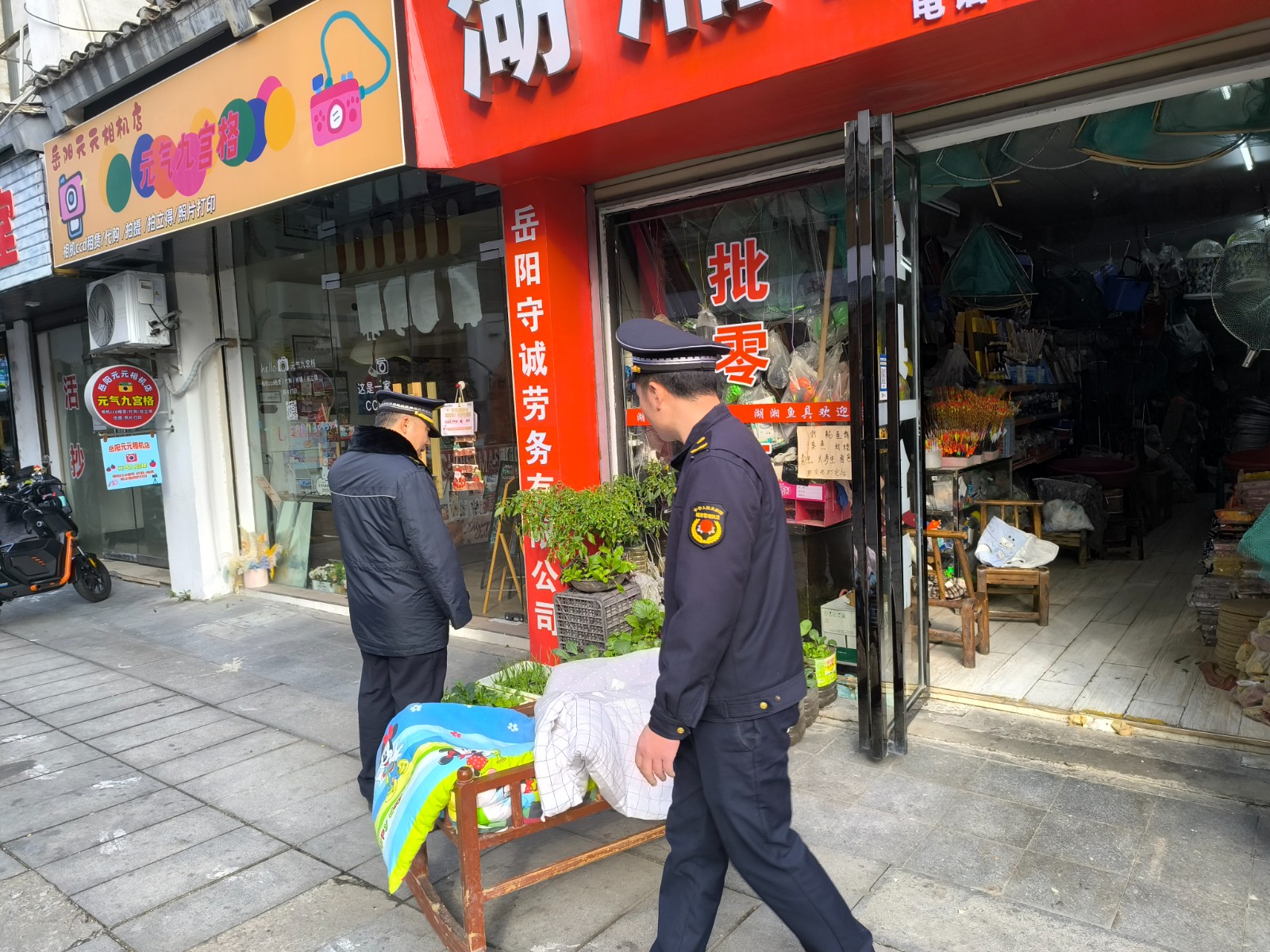 12月16日,岳阳楼街道郭亮社区联合城管部门开展专项整治行动,以文明执法的方式引导商户整改,让辖区街面环境焕然一新。