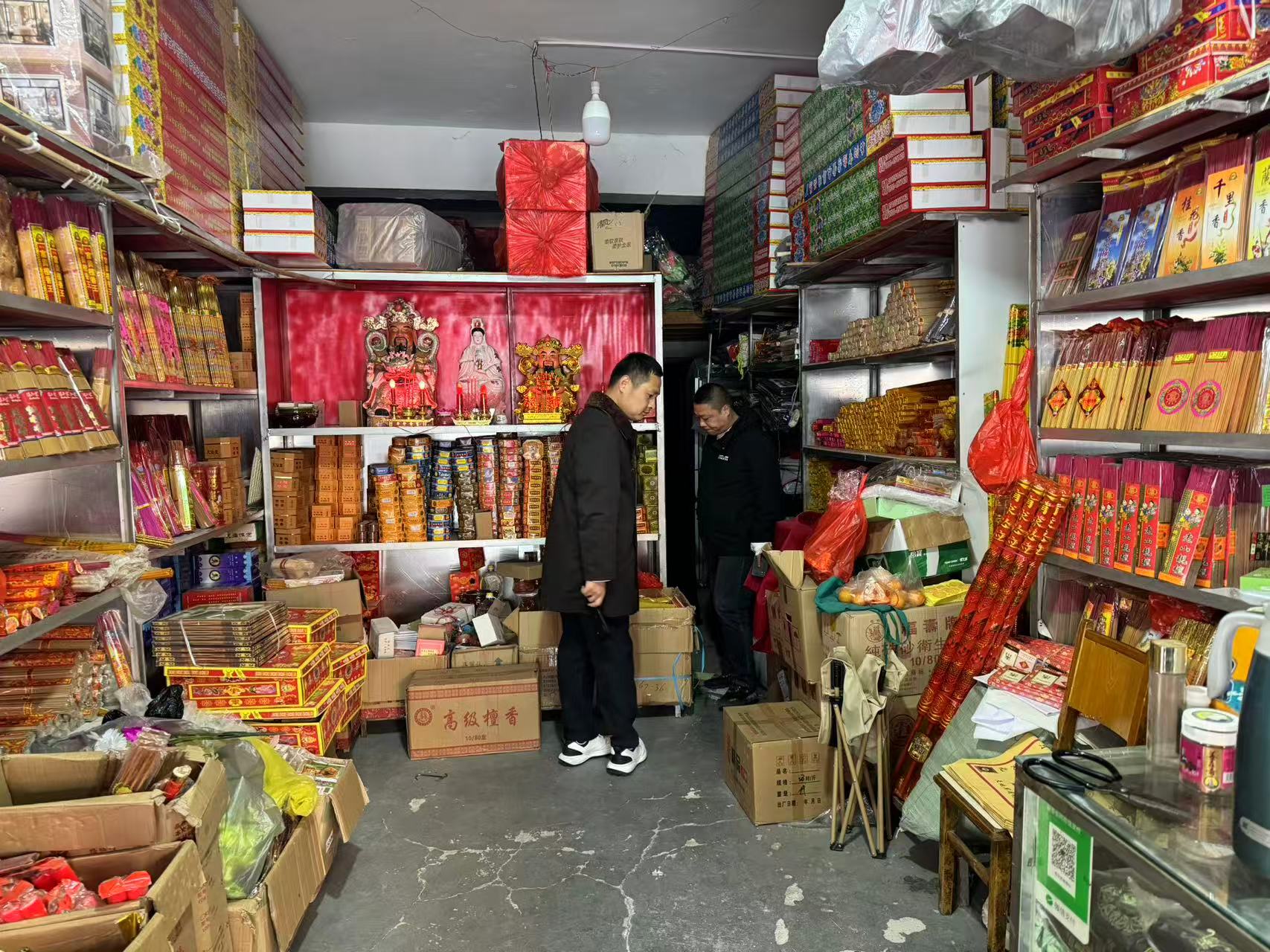 检查组对市场内50余家商铺进行了突击检查,重点排查是否存在非法储存、销售烟花爆竹行为,并向经营户及周边居民详细宣讲禁燃政策与安全知识,发放宣传资料,引导商户自觉遵守法规,共同维护公共安全与环境秩序。