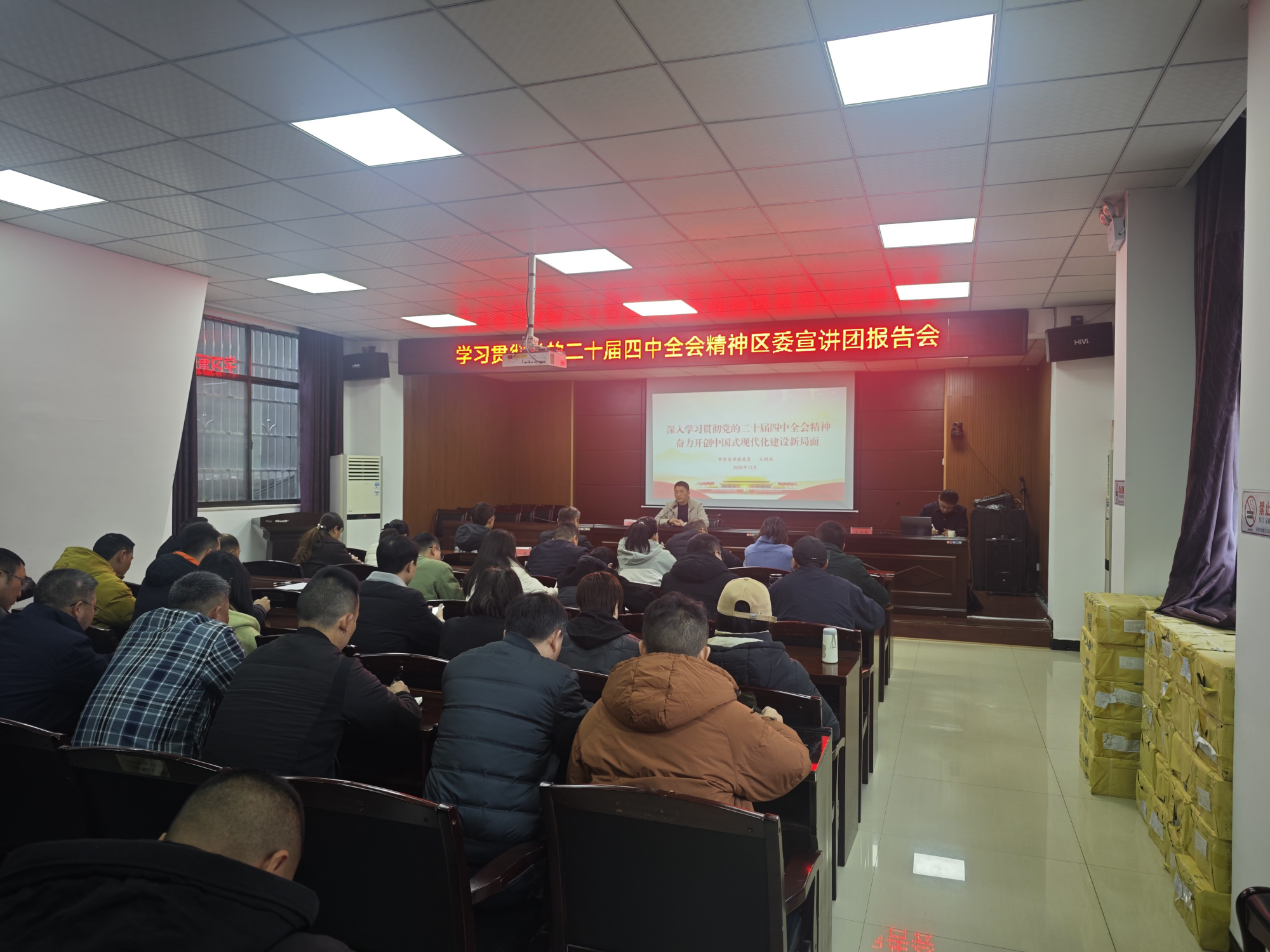 12月26日上午,金鹗山街道成功举办学习贯彻党的二十届四中全会精神区委宣讲团报告会,以《深入学习贯彻党的二十届四中全会精神 奋力开创中国式现代化建设新局面》为主题做专题辅导报告,街道全体机关干部职工、各社区党组织书记及党建专干参加学习。