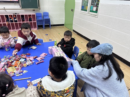 活动现场温馨喜庆,志愿者与幼儿园老师为孩子们准备了点心饮品。互动游戏、才艺表演轮番进行,孩子们踊跃参与,现场氛围热烈;志愿者还为孩子们讲解新年传统习俗。活动最后,社区为每位小朋友送上新年小礼物。